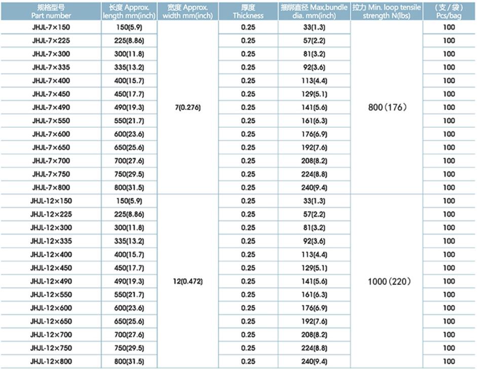 特性∶耐腐蝕單勾倒齒鎖緊扎帶,抗張力可達到60kg室內外適用;